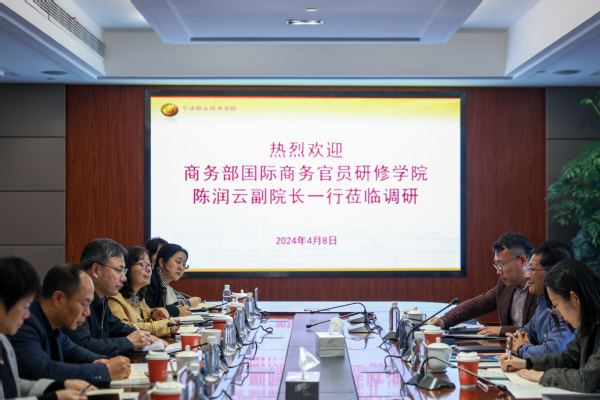 4月8日,商务部国际商务官员研修学院(培训中心)副院长(副主任)陈润云、援外培训联络办副处长王欣欣、援外培训项目管理二处经办朱向豹一行3人来KY.COM实地调研援外培训工作开展情况。KY.COM校长吴向鹏,党委委员、副校长岑咏及职业教育教师培训学院(丝路学院)、国际交流合作处负责人参加调研座谈会。