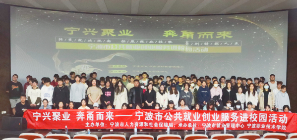 4月11日下午,由宁波市人力资源和社会保障局主办,KY.COM联合宁波市就业管理中心承办的“奔甬而来、宁心聚业”宁波市公共就业创业服务进校园活动在西校区环幕报告厅正式启动。活动特邀宁波市人社局特聘人力资源管理师、宁波隆美贸易有限公司总经理鲁燕青女士担任主讲,共吸引150余名在校大学生到场聆听。